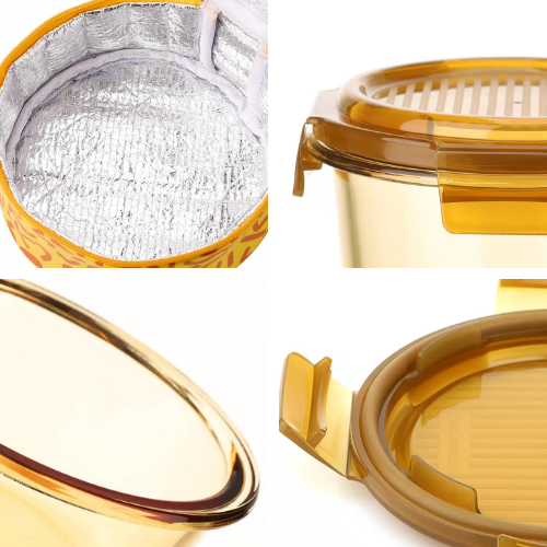 The LOCK&LOCK Amber Glass Food Storage Container with Lunch Bag offers a perfect balance of elegance and practicality. Crafted from heat-resistant borosilicate glass, the container ensures safe food storage and reheating, while the airtight lid keeps your meals fresh and spill-free.