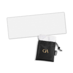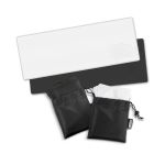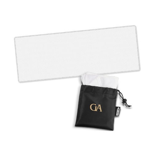 Compact cooling towel which is manufactured from a 50/50 blend of RPET and polyester. RPET material is produced from recycled PET water bottles and food packaging. RPET fibres completely repel water which evaporates much faster when it contacts them. The towel will cool up to 15 degrees below the outdoor temperature in seconds by harnessing the power of this rapid evaporation. To activate it, wet the towel, wring it out and snap it tight to remove excess water. Wearing it around the neck or head provides natural, chemical-free cooling that will last as long as the towel remains wet. It is ideal for use when playing sports, jogging, walking, biking, at the gym, working outdoors etc. It can also be used as a sports towel and is presented in a drawstring pouch which is manufactured from 90% RPET and 10% PU. An instruction leaflet is included.