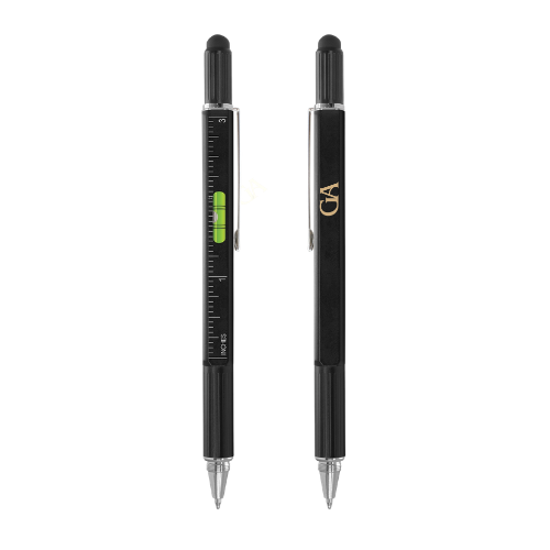 Precision twist action, multi-function aluminium ballpoint pen. Concord also has a stylus, a ruler with both metric and imperial measurements, a spirit level and two screwdrivers inside the upper barrel. It has a black refill with 400 metres of German manufactured Dokumental ink.